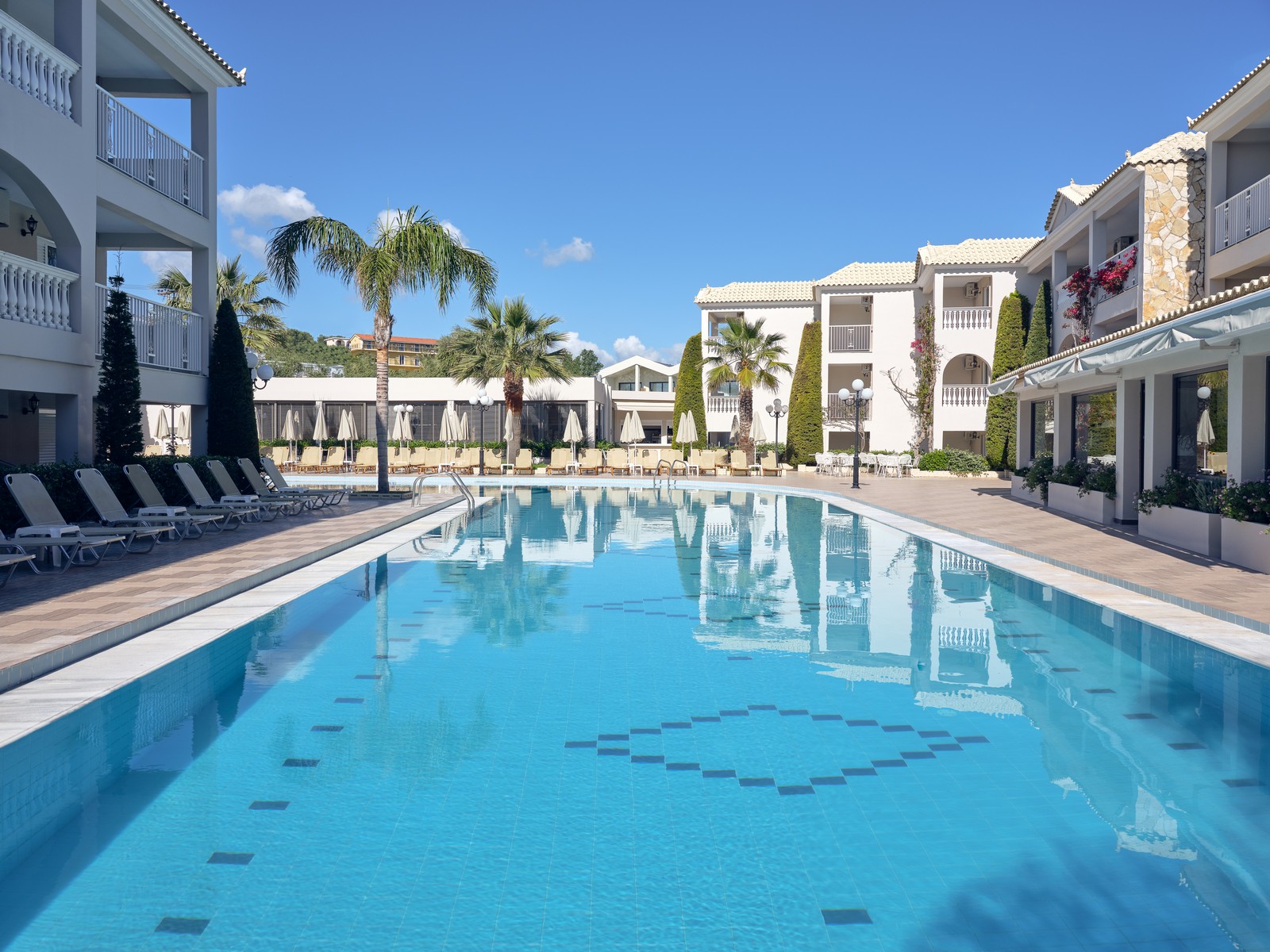 Planos Bay Hotel is located in Tsilivi, Zakynthos, Greece. The hotel’s location is less than a 15-minute drive from Zante Town and five minutes to the beach.